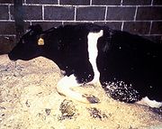 On soupçonne aussi l'existence d'une voie de contamination mère-veau, qui pourrait représenter jusqu'à 10 % des contaminations[3].